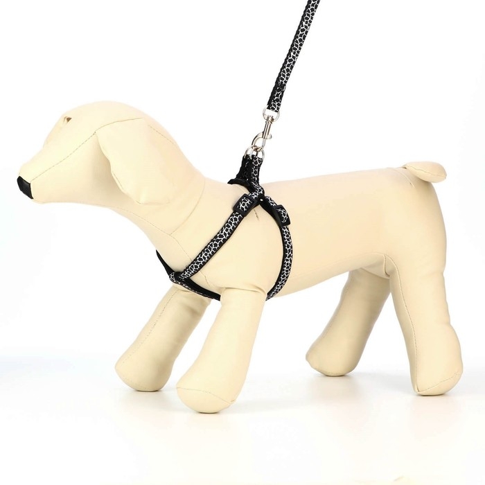 Комплект прошитый "Жираф", ширина 1 см, поводок 120 см, шлейка 23-35 см, чёрно-белый