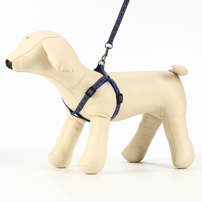 Комплект с мягкой шлейкой "Якорь", размер M, поводок, 120 х 1,5 см, ОГ 34-66 см, синий