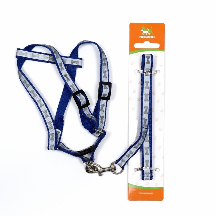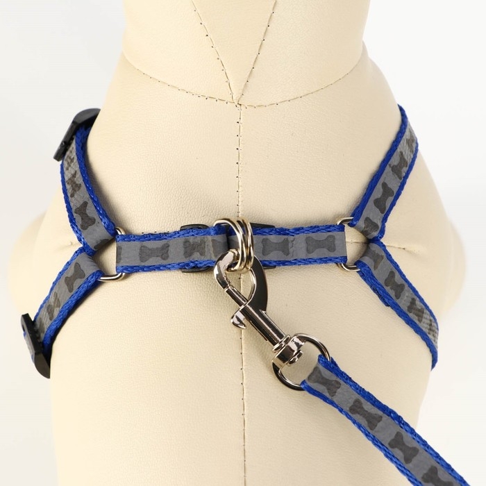 Комплект светоотражающий "Косточки",поводок 1 х 120 см,(ОШ 28-36 см,ОГ 28-36 см) синий