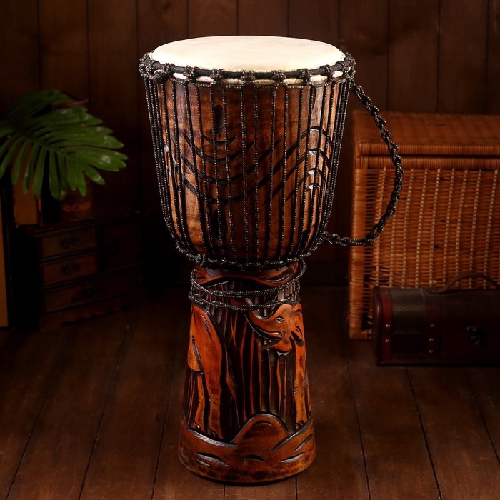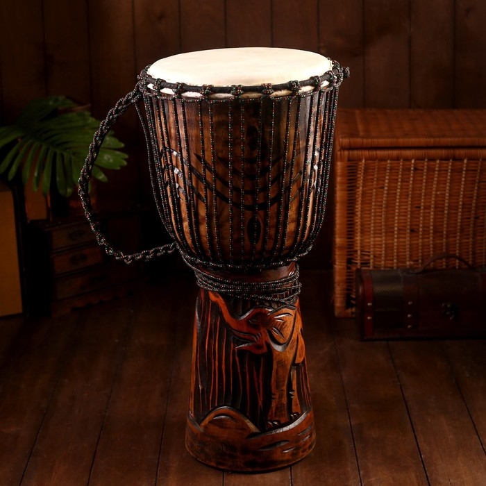 Сувенирный музыкальный инструмент барабан джембе "Тёмный" 60х25х25 см МИКС
