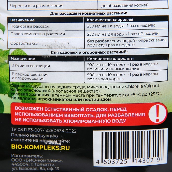 Суспензия хлореллы биостимулятор БИО-комплекс, 5 л
