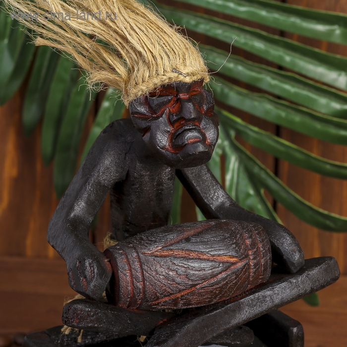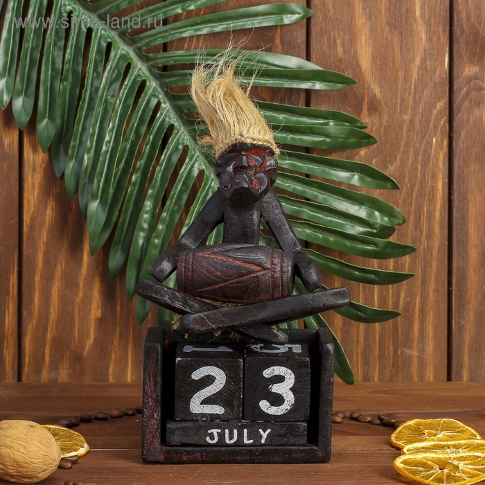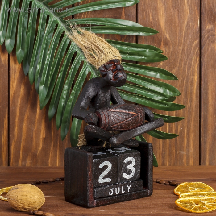 Сувенир дерево календарь "Абориген сидит с барабаном" 19х11х5,5 см
