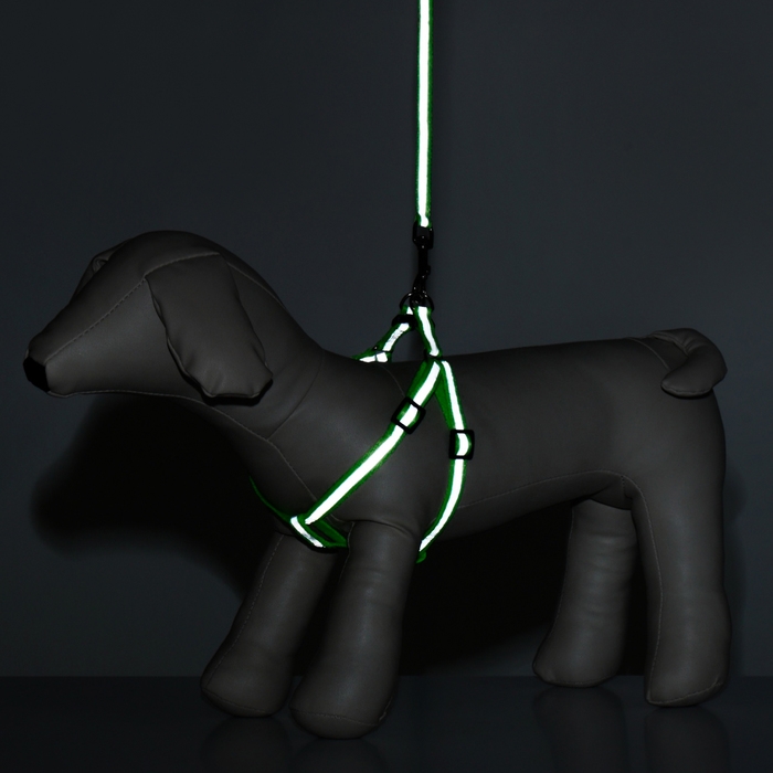 Комплект амуниции со светоотражающей лентой - это отличный выбор для безопасных прогулок с вашим питомцем в темное время суток.