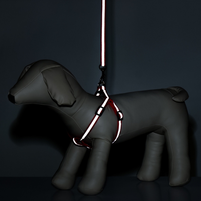 Комплект амуниции со светоотражающей лентой - это отличный выбор для безопасных прогулок с вашим питомцем в темное время суток.