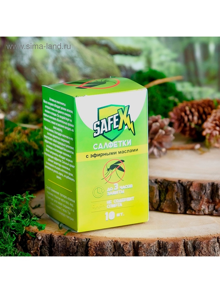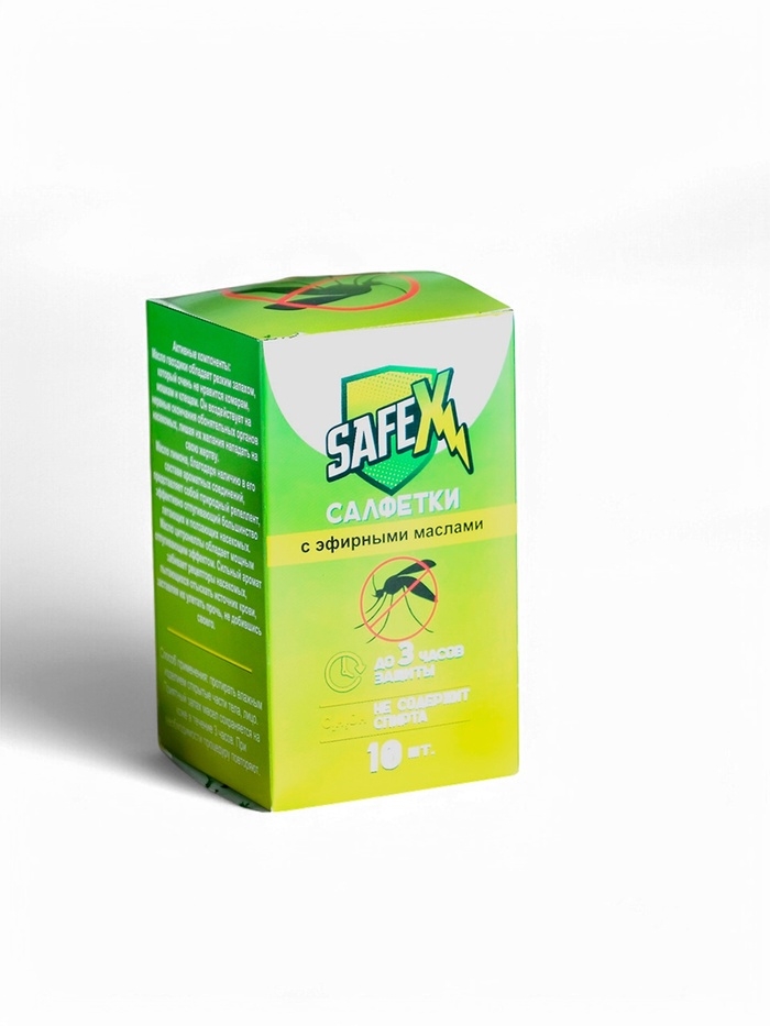 Влажная салфетка от комаров на натуральных эфирных маслах, 10 шт