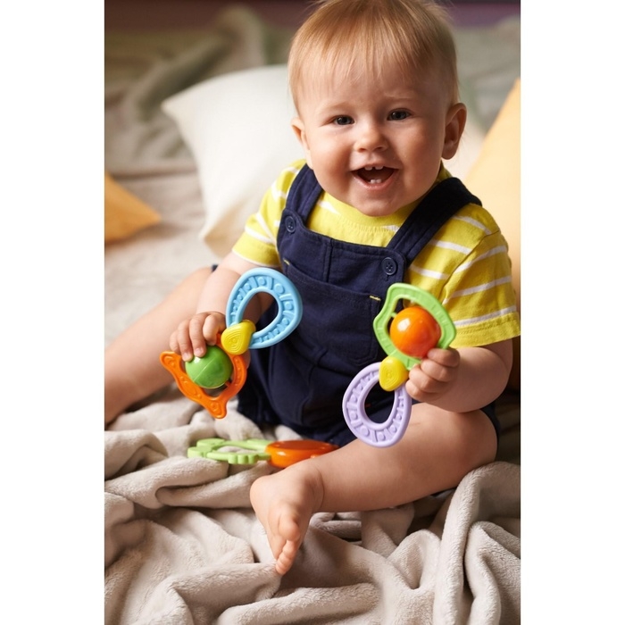 - Легкость и удобство использования: Наши погремушки имеют оптимальный размер и форму для маленьких ручек ребенка. Они легко ухватываются и удобно держатся, позволяя малышу самостоятельно исследовать и играть с ними.