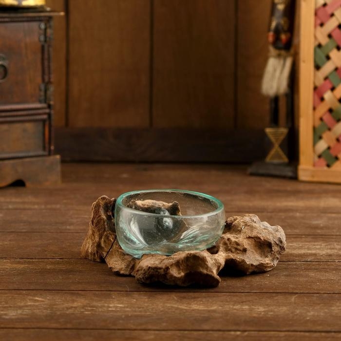 Вазон стекло на коряге "Блюдо" 15х15х8 см