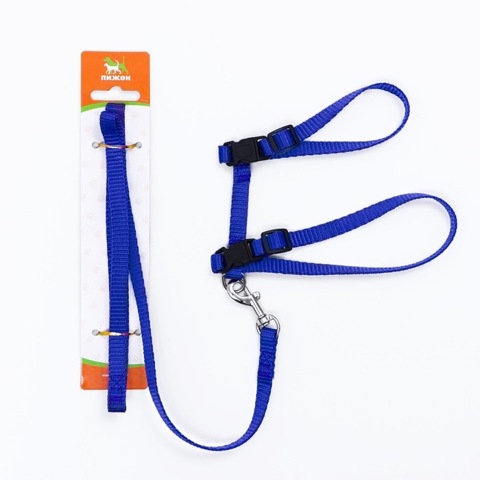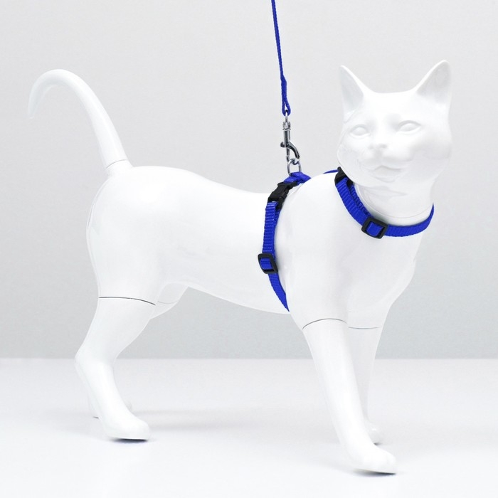 Комплект для кошек, ширина 1 см, ОШ 16,5-27 см, ОГ 21-35 см, поводок 120 см, синий