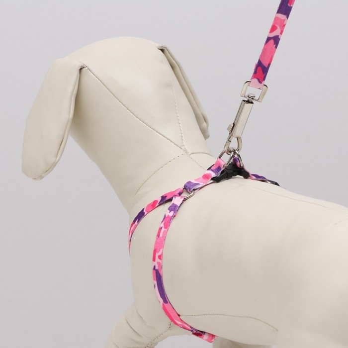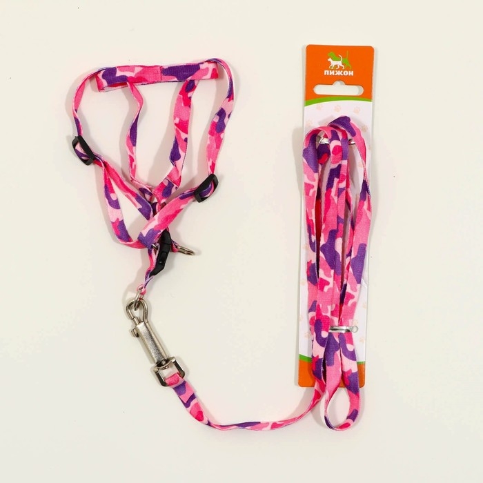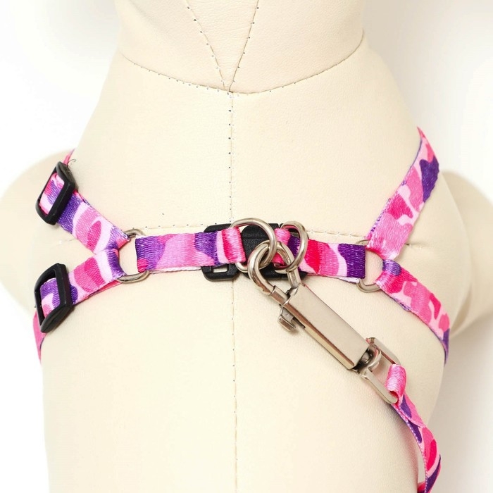 Комплект "Камуфляж", капрон, ширина 1см,шлейка 21-35 см,поводок 120 см, капрон, розов/фиолет