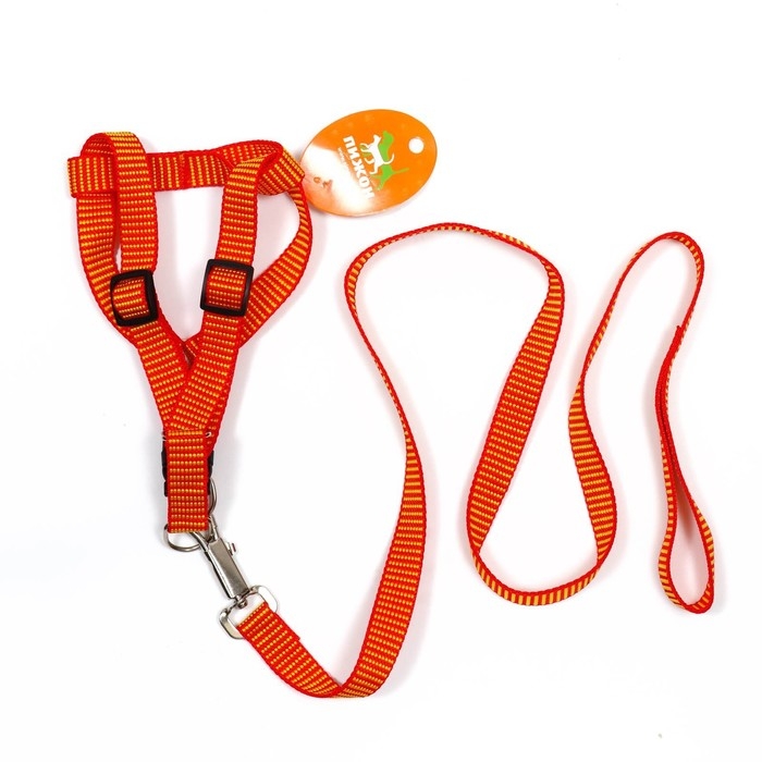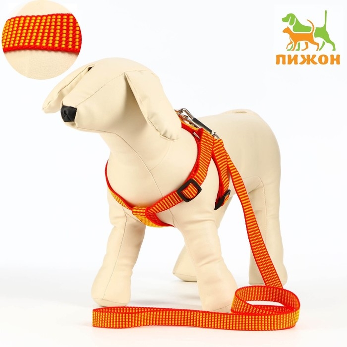 Комплект амуниции рельефный, 2 см, поводок 120 см,красно-жёлтый