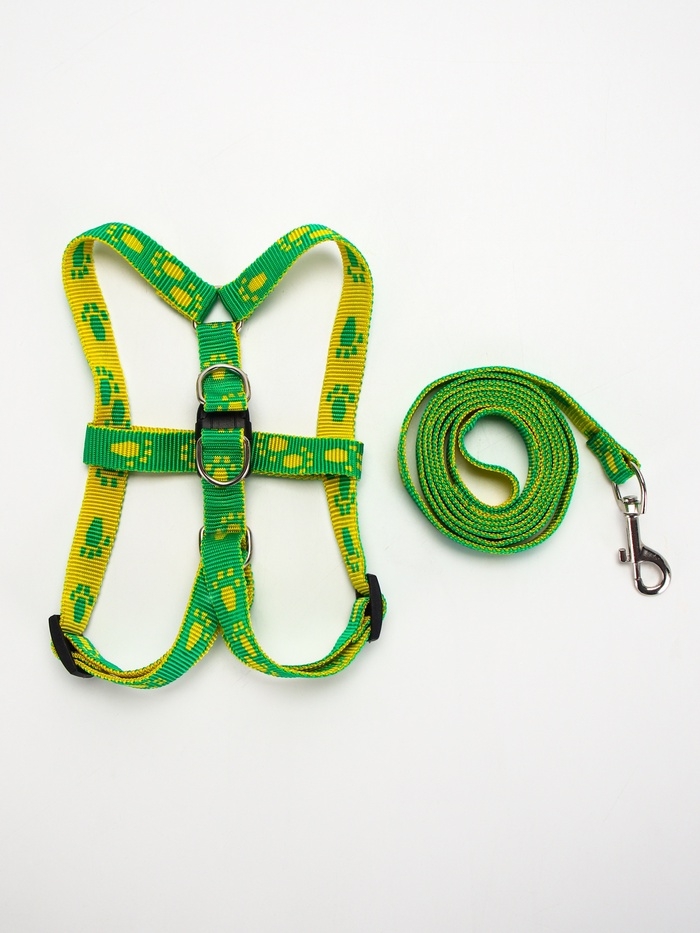 Комплект "Большая лапа", ширина 1,5 см, поводок 120 см, шлейка 28-42 см, жёлто-зелёный