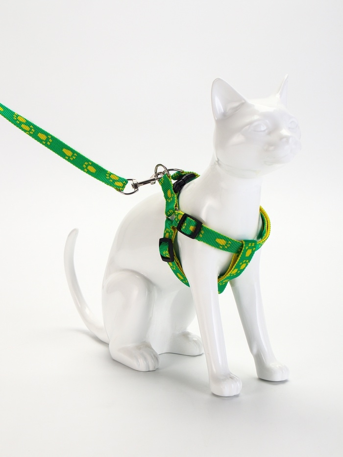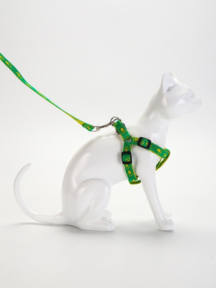 Комплект с мягкой шлейкой "Веточки", размер S, поводок 120 х 1,5 см, ОГ 28-62 см, зеленый