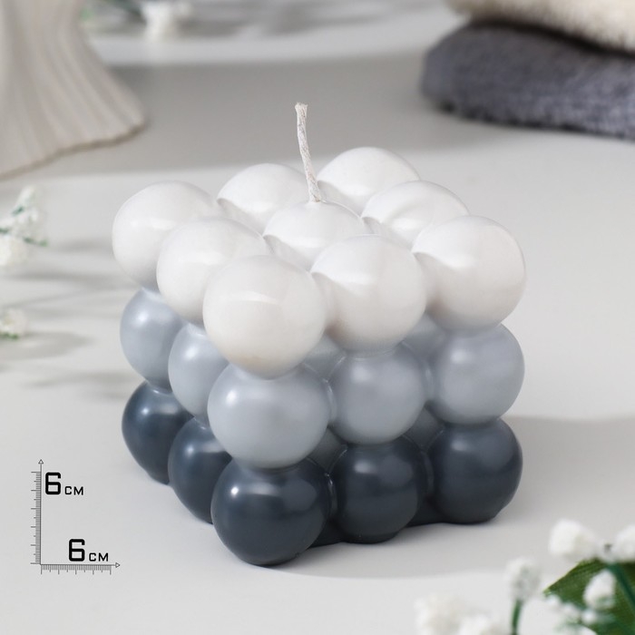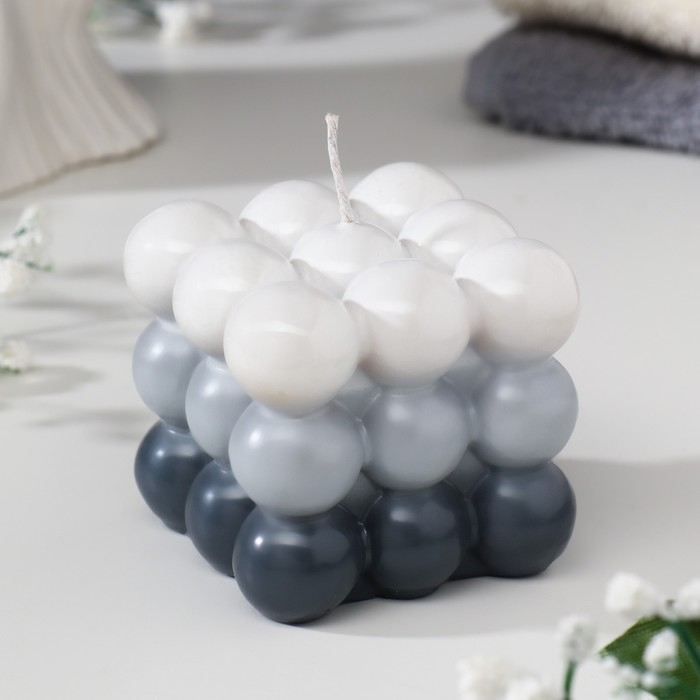 Свеча фигурная "Бабл куб", 6 см, бело-серая