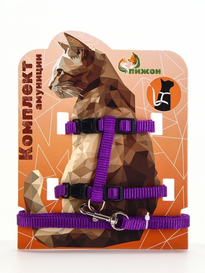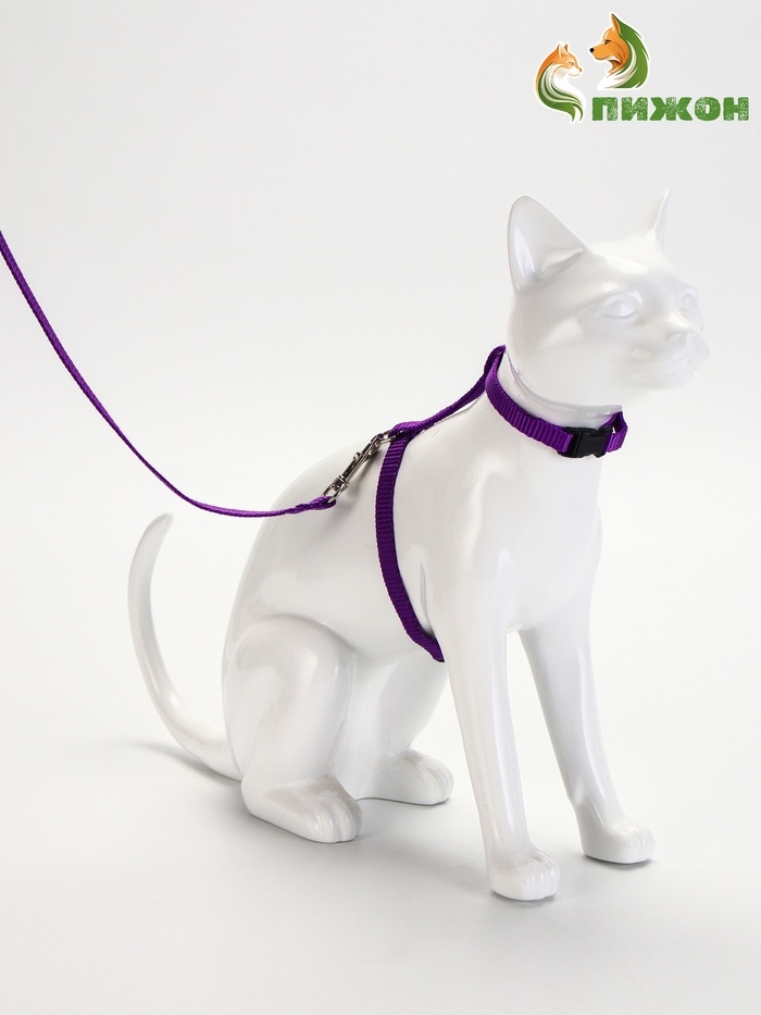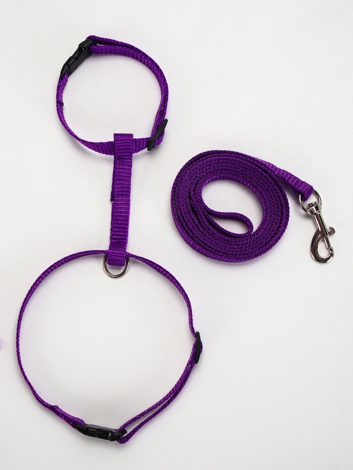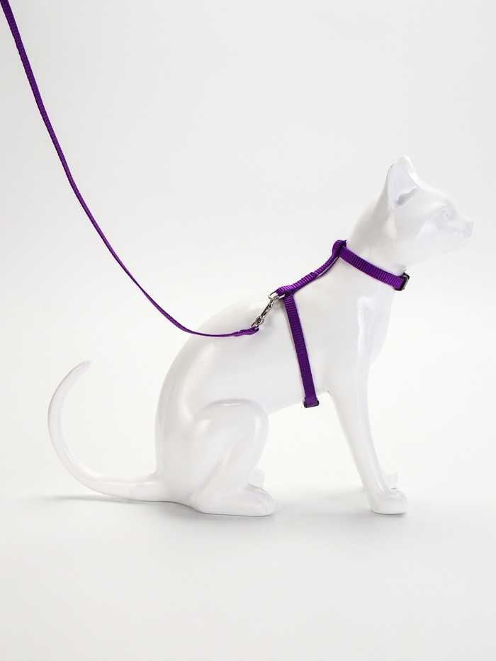 Комплект для кошек, ширина 1 см, ОШ 16,5-27 см, ОГ 21-35 см, поводок 120 см, фиолетовый