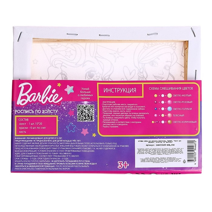Набор для детского творчества Барби, холст для росписи, 15 × 20 см