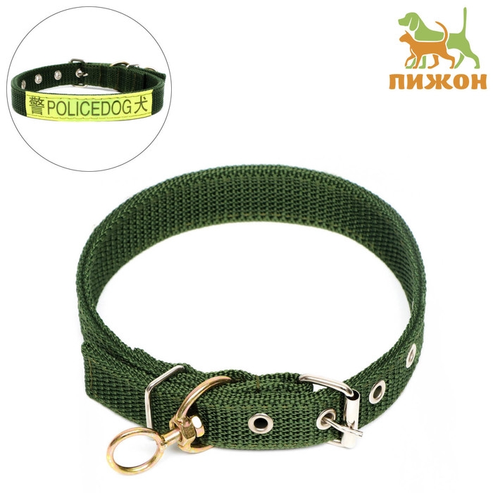 Ошейник брезентовый двухслойный, 72 х 3,5 см, ОШ 45-60 см, хаки