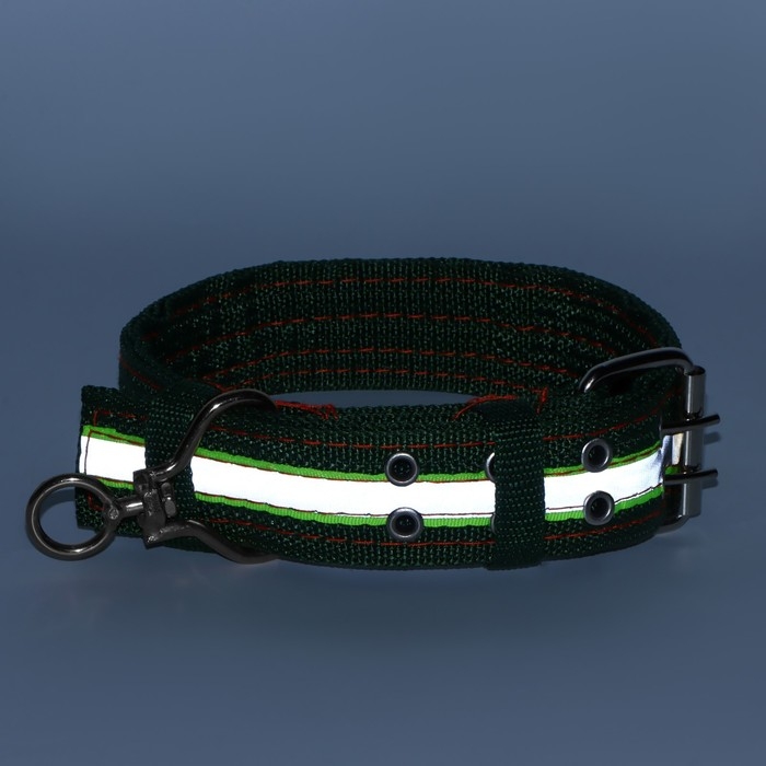 Ошейник четырехслойный светоотражающий с вертлюгом, 65 х 4 см, зелёный