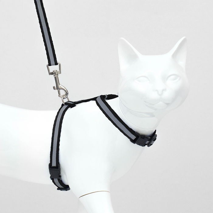 Комплект для кошек светоотражающий,ширина 1 см,шлейка 21-35 см,поводок 120 см, чёрный