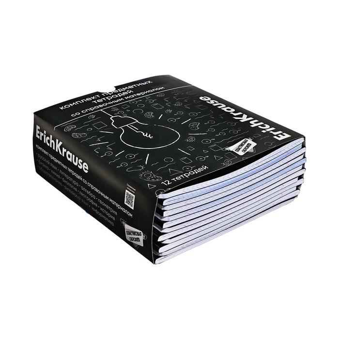Комплект тетрадей по 12 основным учебным предметам: русский язык, литература, алгебра, геометрия, физика, химия, биология, география, история, обществознание, английский язык, информатика. Удобный вариант для приобретения на целый учебный год или в подарок. Каждая тетрадь объемом 48 листов имеет инфо-блок на 4 страницы с кратким изложением школьной программы. Упаковка - картонная обечайка в термоусадочной пленке.