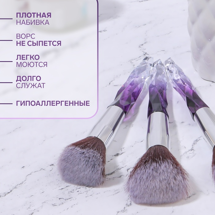 Набор кистей для макияжа «Luminous», 10 предметов, PVC - чехол, цвет чёрный/фиолетовый
