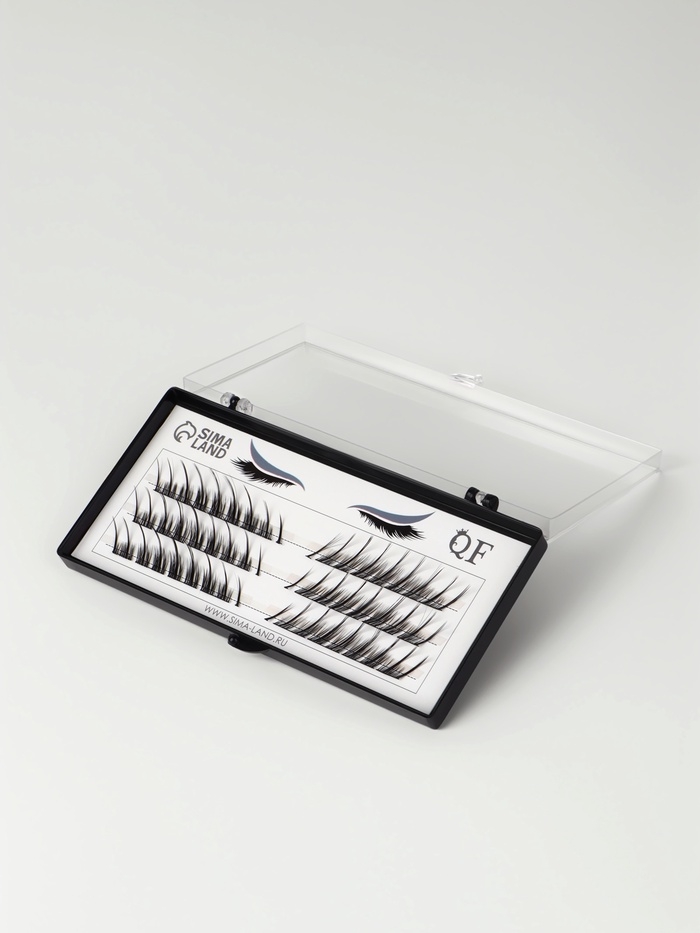 Ресницы накладные пучки СТРЕЛКА 10/12/14мм нейлон черный п/короб QF
