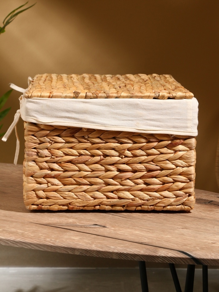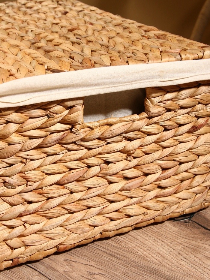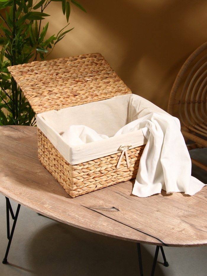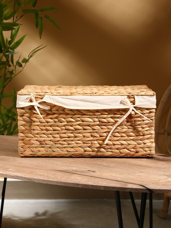 Корзинка прямоугольная с крышкой и тканевым подкладом, 44х30х20 см, водный гиацинт