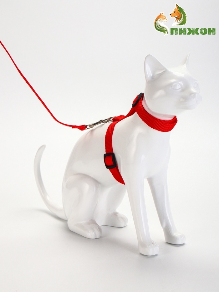 Комплект для кошек, ширина 1,5 см, ОШ 16,5-27 см, ОГ 21-35 см, поводок 120 см, красный