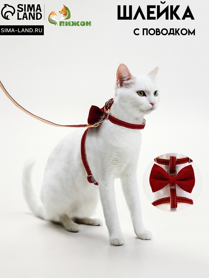 Комплект амуниции "Шахматный джентельмен", поводок 120 х 1 см, красный