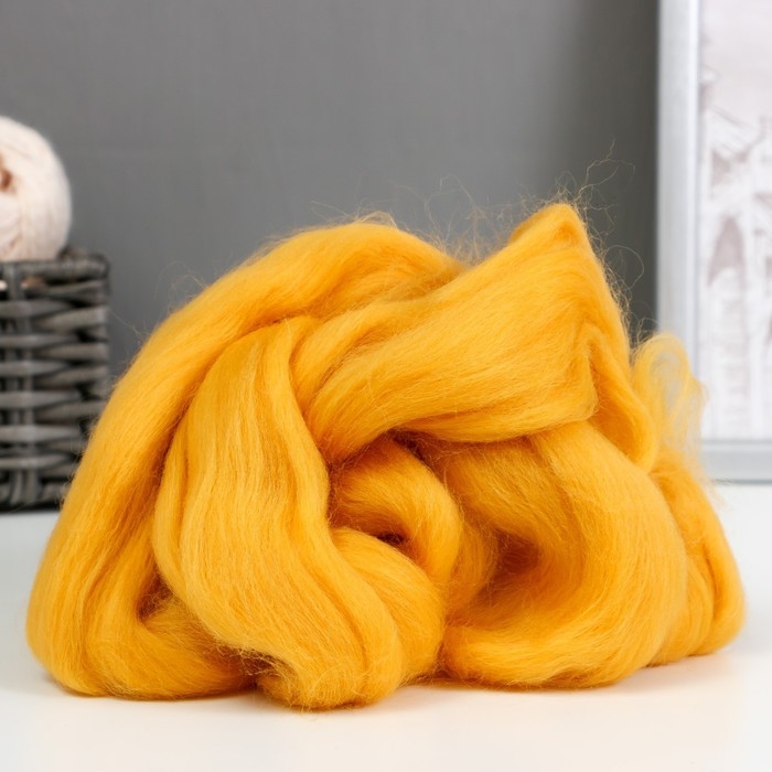 Шерсть для валяния 100% полутонкая шерсть 50 гр (104, желтый)