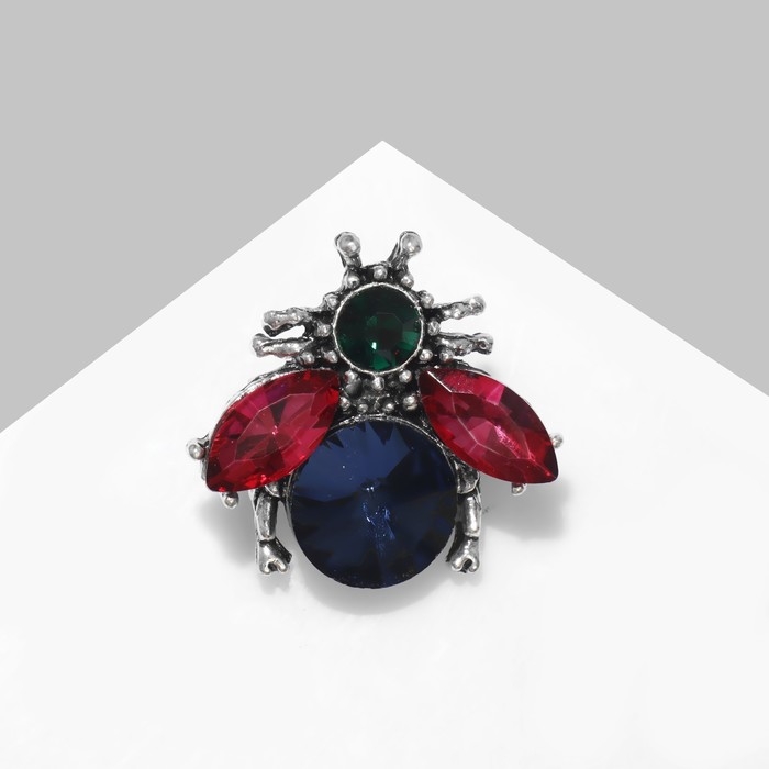 Брошь «Жук», цвет сине-розовый в чернёном серебре
