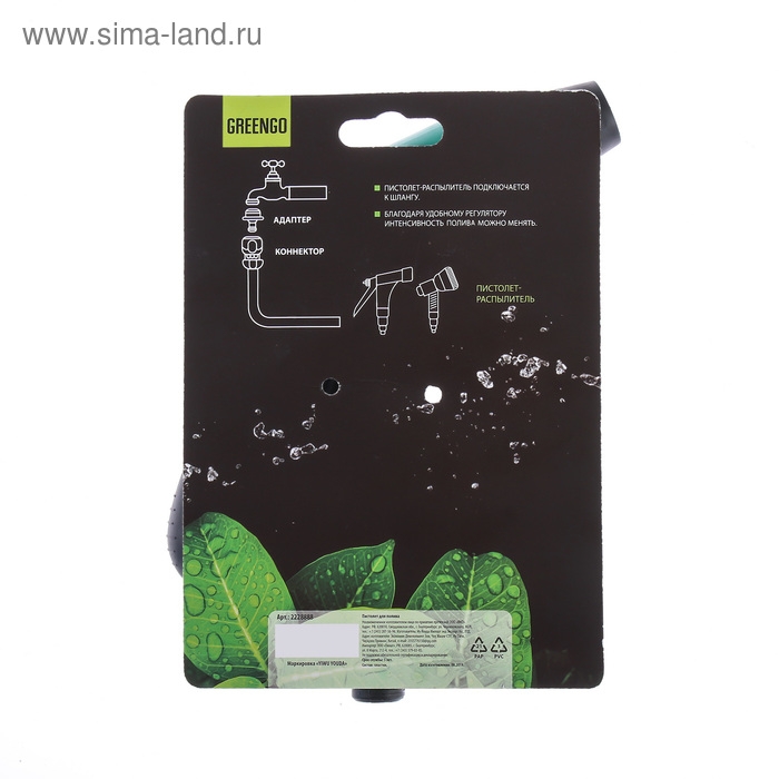 Набор: пистолет-распылитель, коннектор 1/2" (12 мм), коннектор с аквастопом 1/2" (12 мм), пластик, Greengo