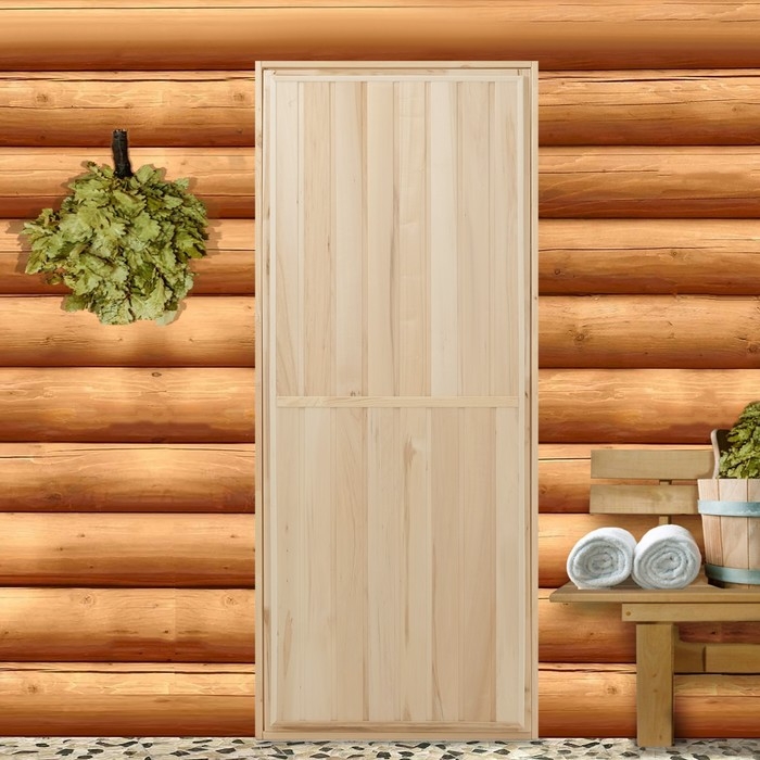 Дверной блок для бани, 180×70см, из сосны, на клиньях, массив, "Добропаровъ"