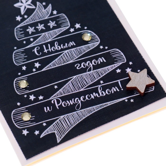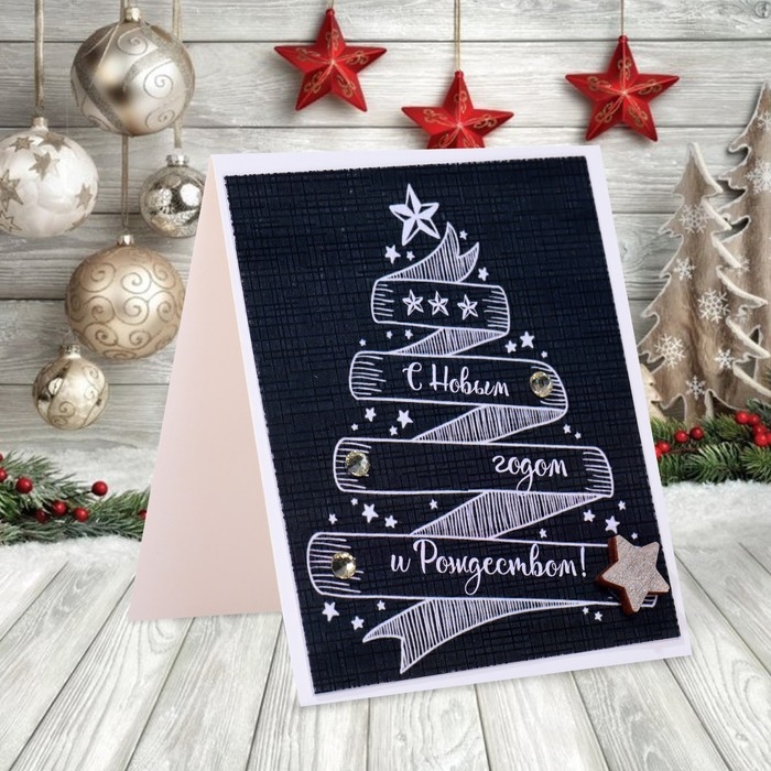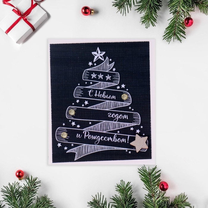 Мини-открытка "С Новым Годом и Рождеством!" лента, ручная работа