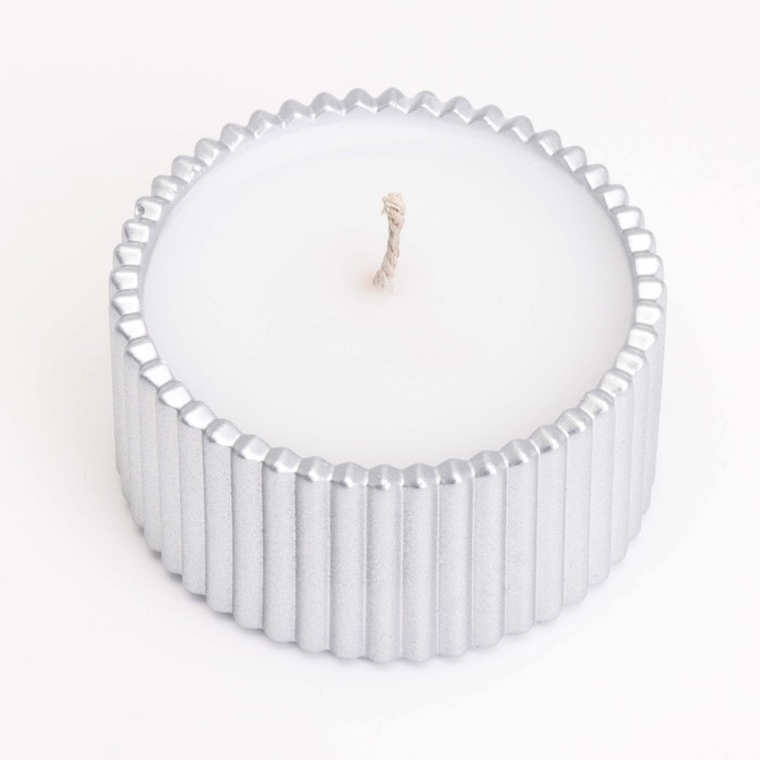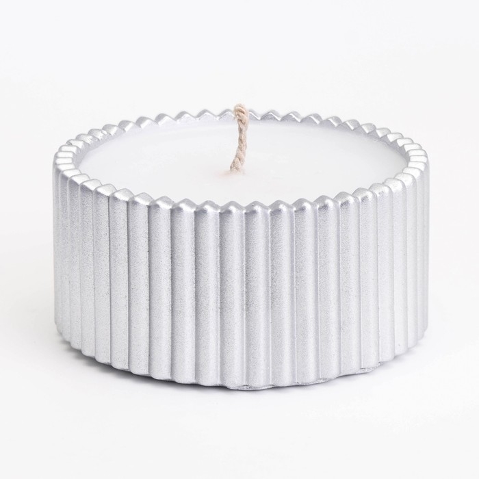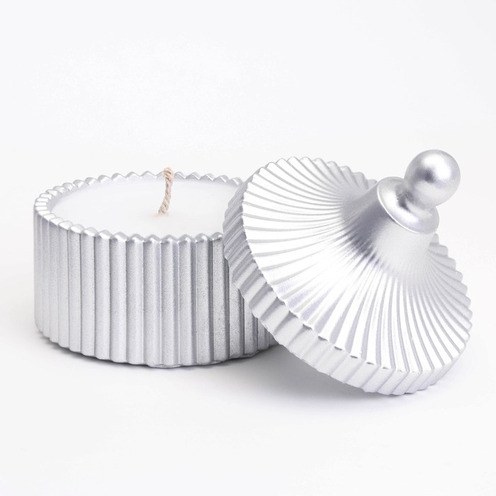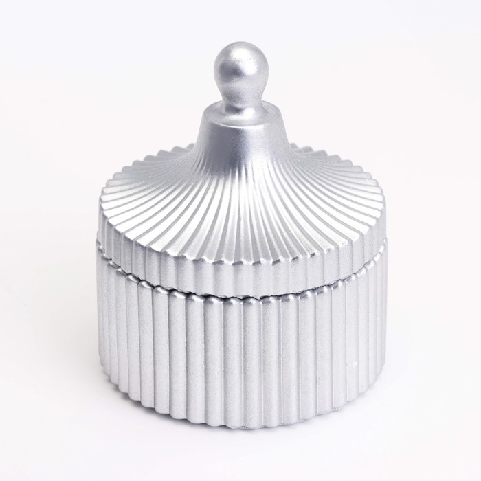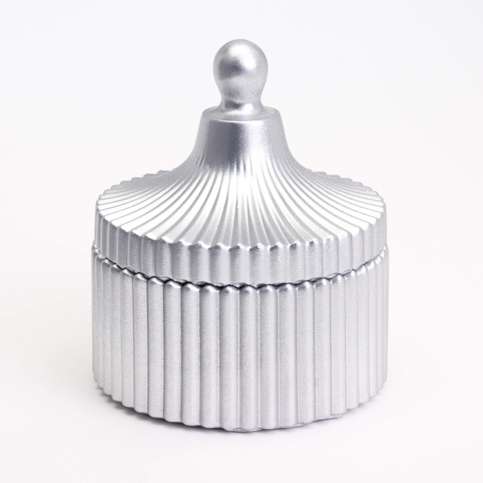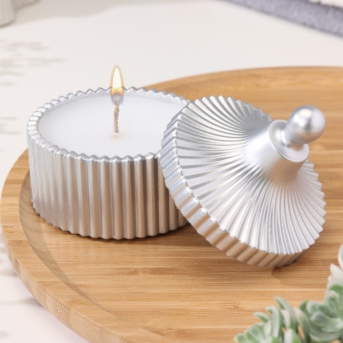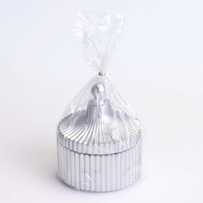 Свеча "Купол" в подсвечнике с узкими гранями из гипса с крышкой,7,5х9 см,серебро