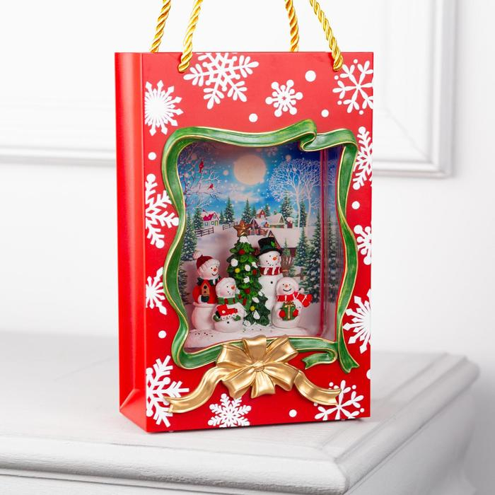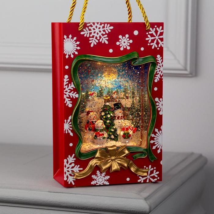 Светодиодная фигура «Подарочный пакет» 15 × 23 × 7 см, пластик, батарейки ААх3 (не в комплекте), USB, свечение тёплое белое