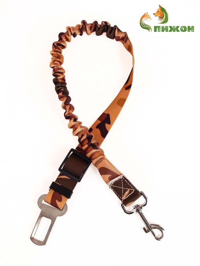 Ремень - поводок безопасности для собак амортизирующий, 50-70 х 2,5 см, коричневый камуфляж