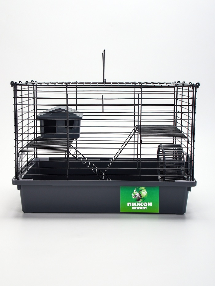 Клетка для грызунов "Пижон" складная, 38 х 27 х 27 (домик, миска, колесо) серая