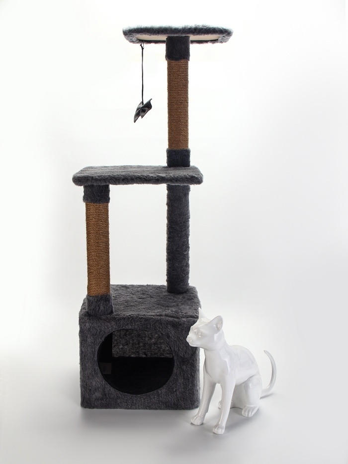 Комплекс для кошек с когтеточкой, 3х-уровневый, 34 х 34 х 105см, темно-серый