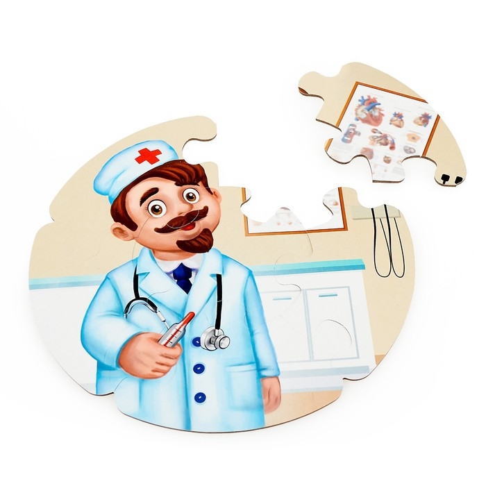 - Пазлы двухсторонние: на одной стороне изображены предметы, на другой — люди разных профессий.