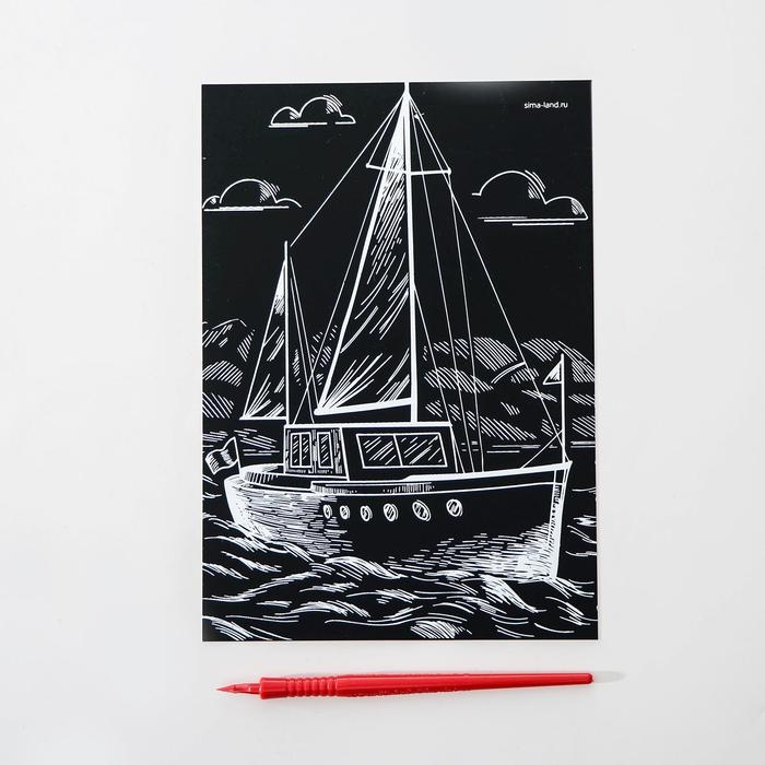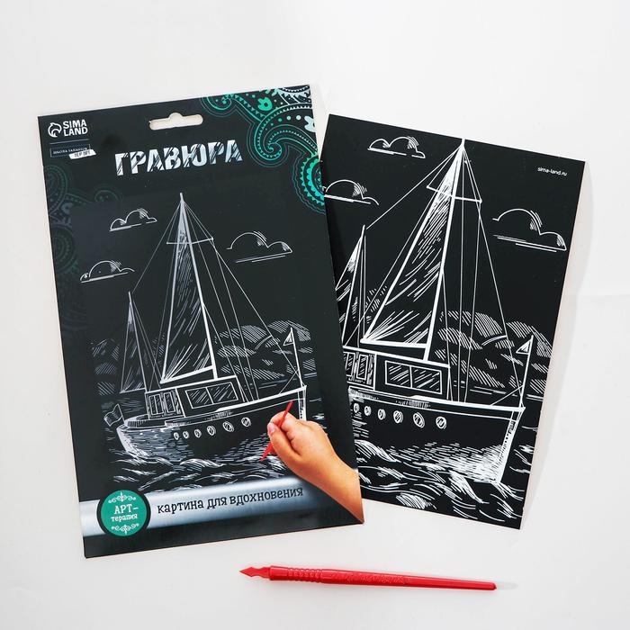 Гравюра на подложке «Яхта» с металлическим эффектом «серебро» А5 — замечательный и оригинальный подарок, который понравится каждому любителю творчества!