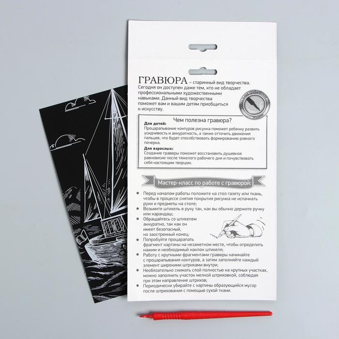 Чтобы создать невероятно красивую гравюру, достаточно процарапать намеченные контуры рисунка специальным инструментом — штихелем. И дети, и взрослые будут с удовольствием соскребать верхний слой гравюры с контурами будущей картины, под которым находится сверкающая фольга — ведь это так увлекательно!