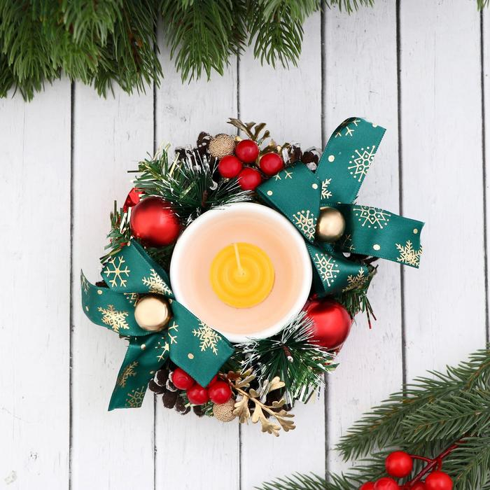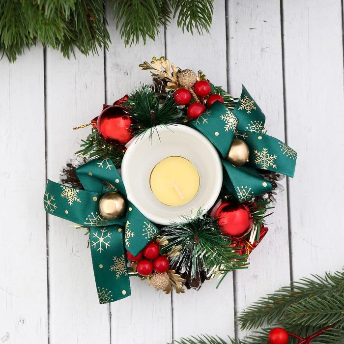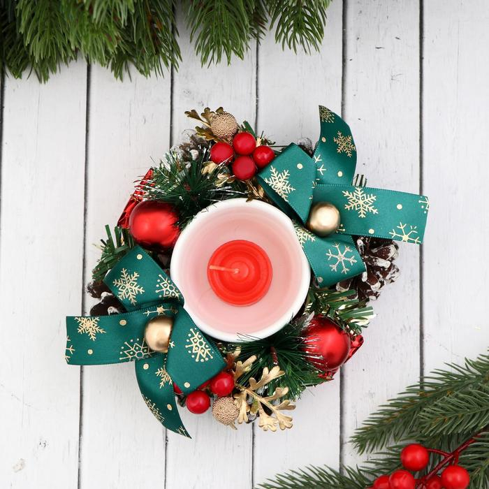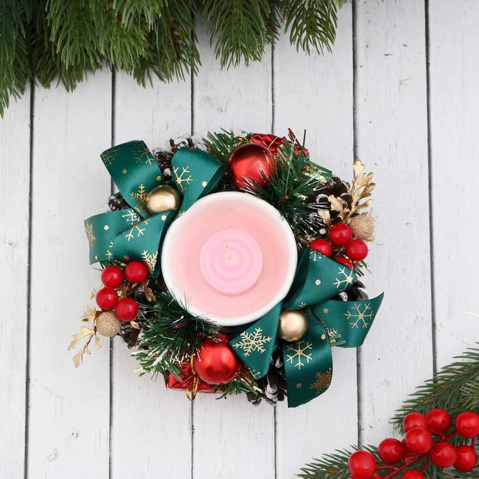 Подсвечник на одну свечу "Гранд" с ягодками и шишками 16 см, отв d-6,5 см