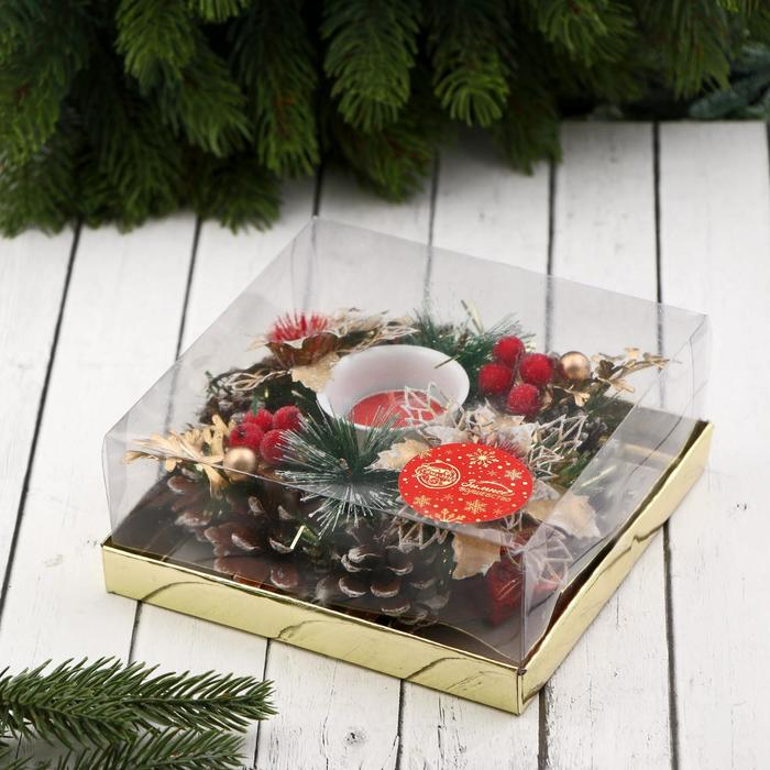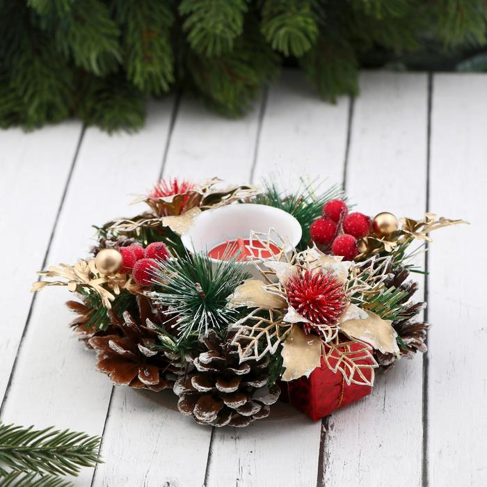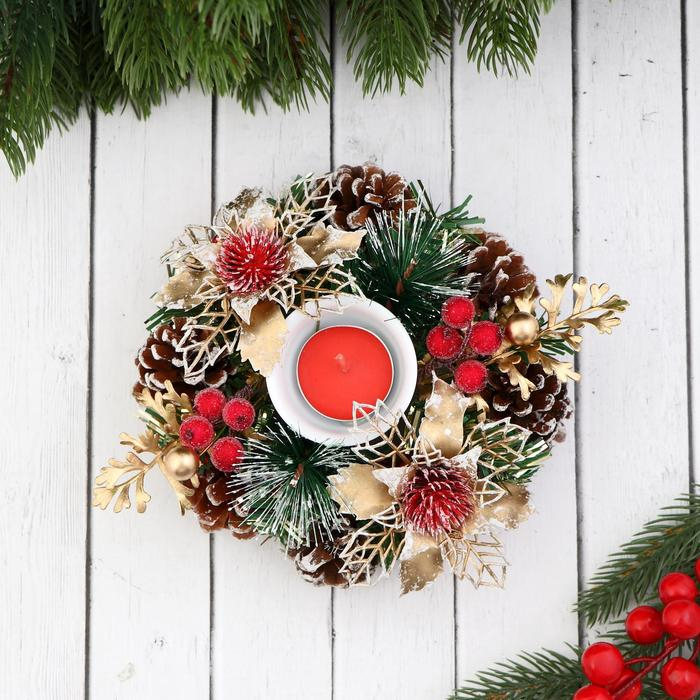 Подсвечник со свечой "Гранд" с зимними цветами, 16 см