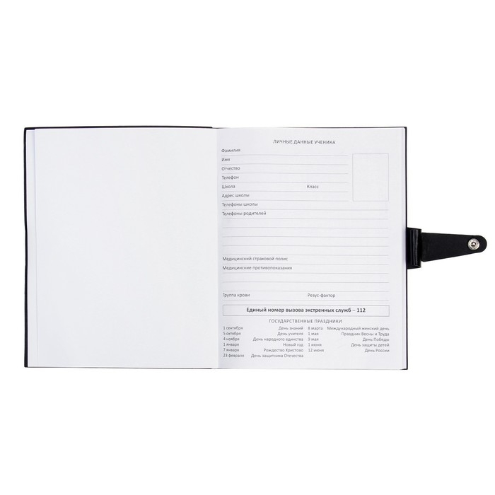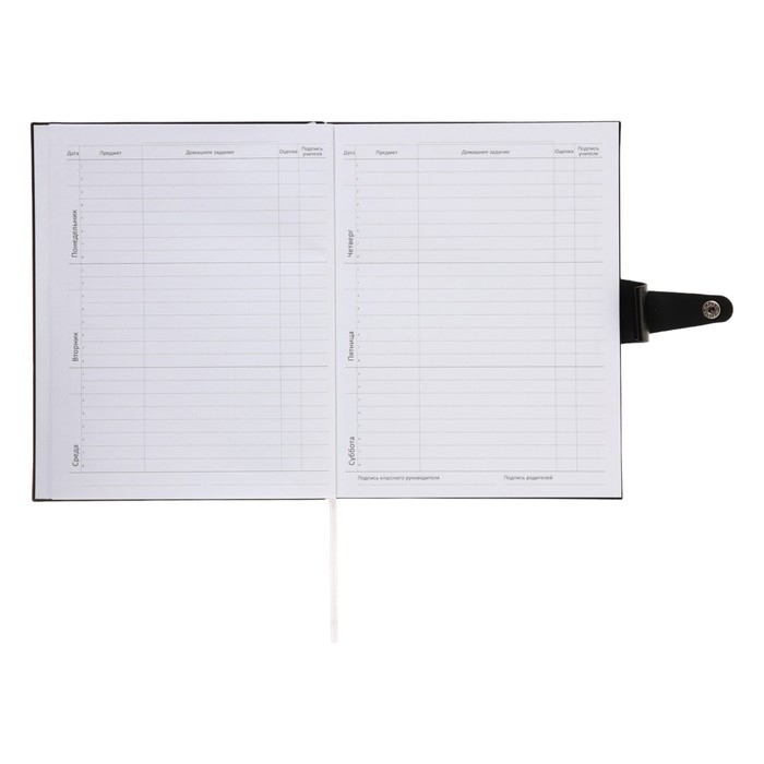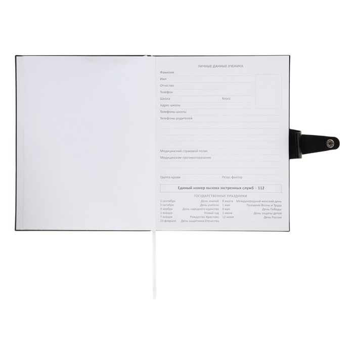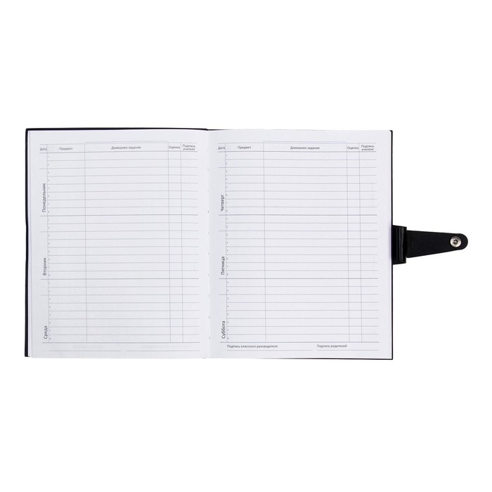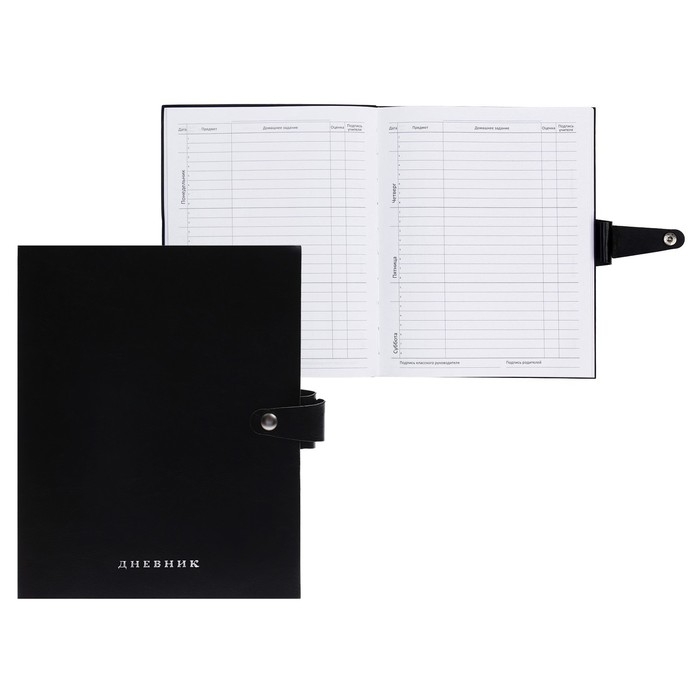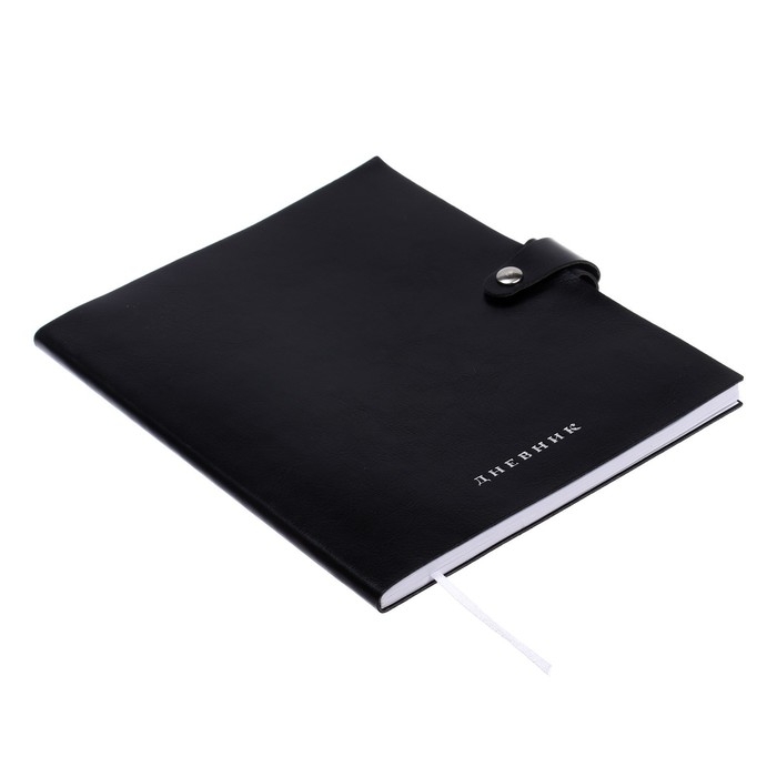 Дневник "deVENTE. Favourite. Black" универсальный блок, офсет 1 краска, белая бумага 80 г/м², мягкая обложка из искусственной кожи c хлястиком на кнопке и держателем для ручки, тиснение фольгой, 1 ляссе