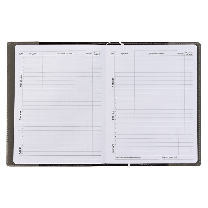 Дневник deVENTE. School style. Grey, универсальный блок, офсет 1 краска, белая бумага 80 г/м2, мягкая съемная обложка из искусственной кожи, термо тиснение, отстрочка, 1 ляссе.