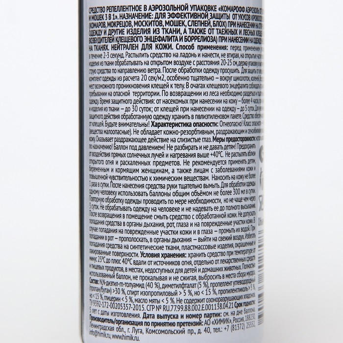 - Защита от мошек: аэрозоль также обеспечивает защиту от укусов мошек, что делает его идеальным выбором для использования на открытом воздухе.