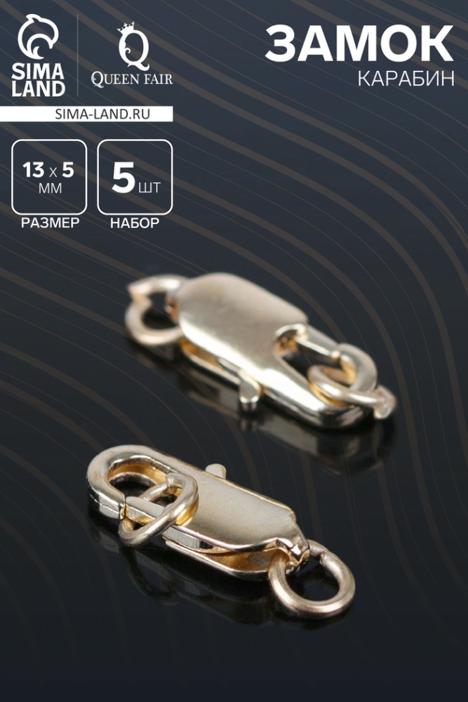 Замок-карабин, 13 мм (набор 5 шт.), СМ-562-8, цвет золото