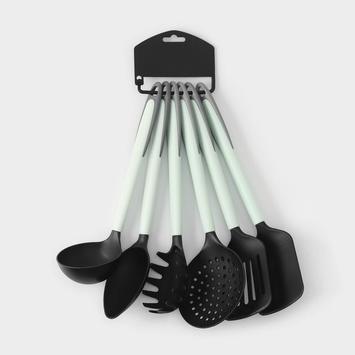 Набор кухонных принадлежностей Доляна «Лиам», 7 предметов, 33×12,5×12,5 см, цвет бирюзовый