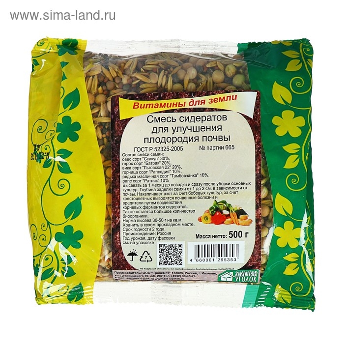 Состав: овес 30%, горох 20%, вика 20%, горчица 10%, редька масличная 10%, рапс 10%