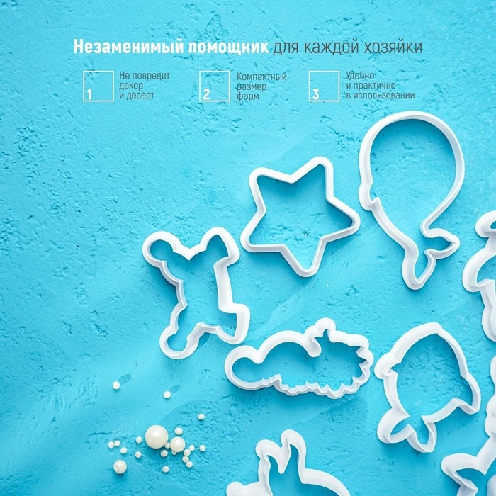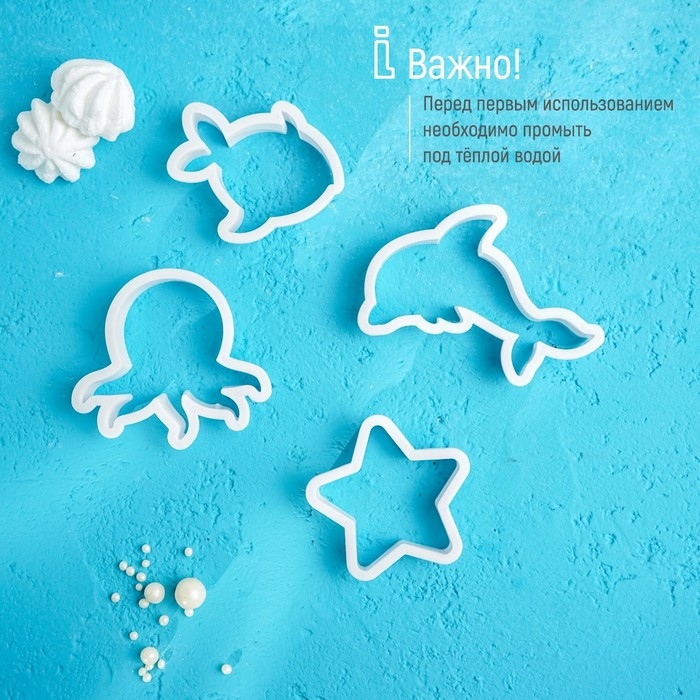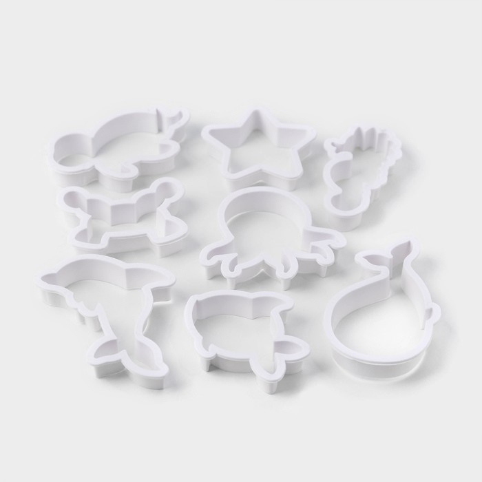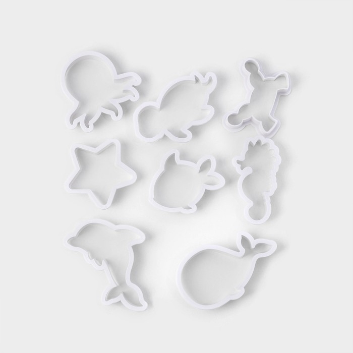 Набор форм для печенья Доляна «Подводный мир», 8 предметов, цвет белый